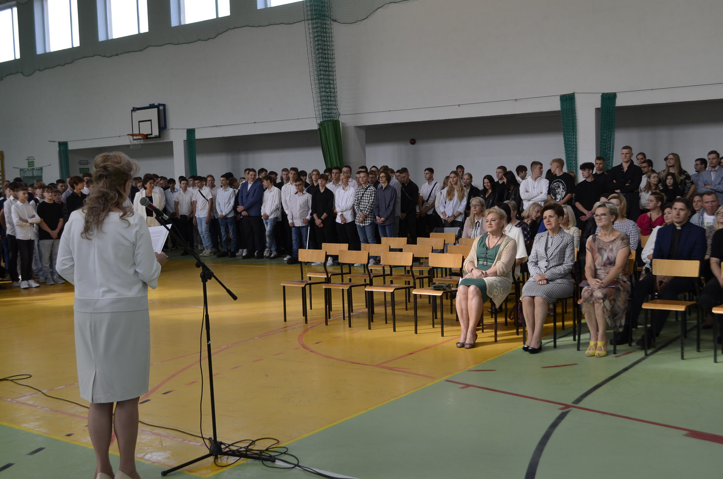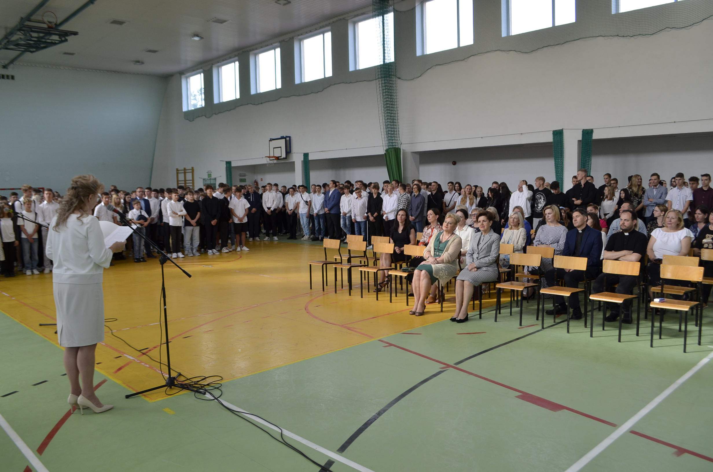 W Zespole Szkół nr 2 im. M. Skłodowskiej-Curie uczniowie i nauczyciele spotkali się na uroczystym apelu rozpoczynającym nowy rok szkolny 2023/24. W tym wyjątkowym dniu dla wszystkich, szczególnie serdecznie witały w nowych murach wszystkich pierwszoklasistów Wicestarosta Gostyniński Maria Wróblewska oraz Pani Skarbnik Elżbieta Kijek życząc samych dobrych ocen, wyrozumiałych i mądrych nauczycieli, najlepszych koleżanek i kolegów w klasie! Odkrywajcie świat, realizujcie swoje pasje i spełniajcie marzenia!