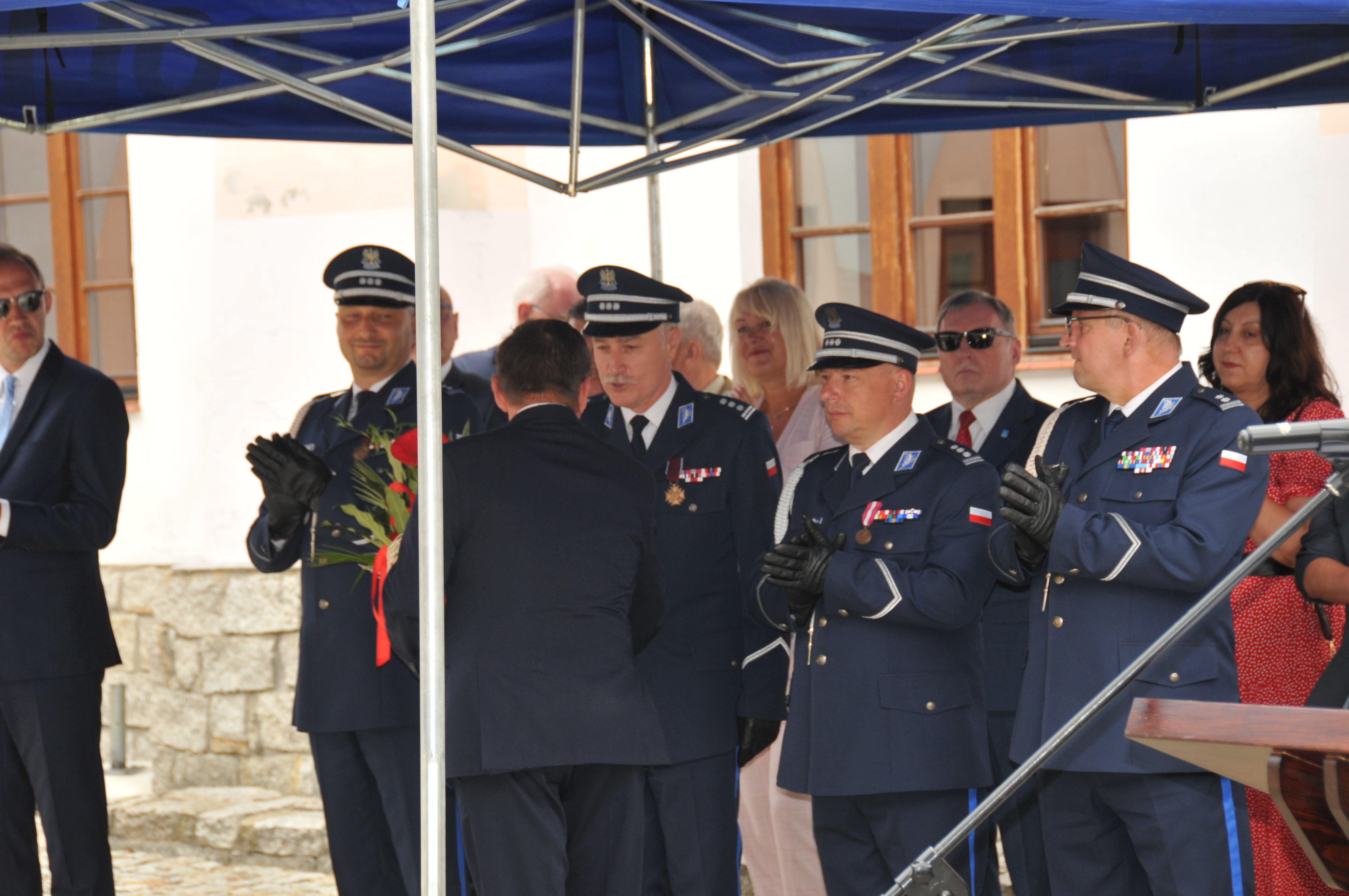 Swoje podziękowania dla Policjantów, którzy każdego dnia dbają o ład i porządek w naszym regionie przekazali przedstawiciele władz samorządowych. Starosta Gostyniński Arkadiusz Boruszewski w swoim przemówieniu podziękował za pracę na rzecz bezpieczeństwa mieszkańców z terenu powiatu gostynińskiego wykonywaną z dużym poświęceniem. Wyraził również wdzięczność za dobrą współpracę oraz pogratulował awansu osobom odznaczonym, które swoją postawą kształtują poszanowanie ładu i porządku publicznego. Wszystkim życzył, aby ta trudna i odpowiedzialna służba była źródłem satysfakcji, a podjętym działaniom towarzyszyła ludzka przychylność i życzliwość.